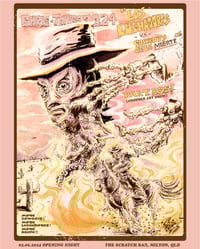 This one just happens to be from last years' edition at Scratch ("Los Luchadores vs. Cowboys De La Muerte Pt. II") & is a real favourite of mine from the show. This loving ode to the always wonderfully solemn Blue Demon, classic western saloon scenes, classic Lucha Libre & of course, beer has become pretty popular at the various in-person events that i did in 2024. I think it's pretty cool how these artworks kind of start a little journey & live a life now after the initial exhibition as I travel the country, hawking my wares. I can't count the amount of wonderful chats I've had about this dude!
