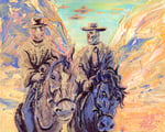 "El Santo & Blue Demon on Horseback" (2025) - acrylic on canvas