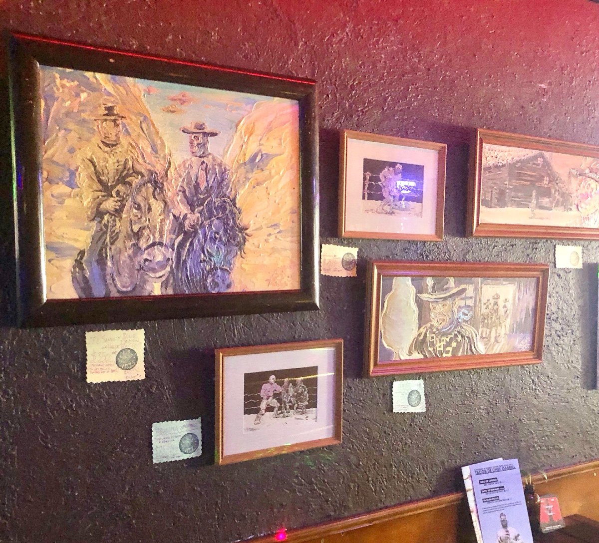 Hi there pals & happy Dia De La Independencia to all of my Mexicano amigos! Today I thought I'd commemorate this very special day in Mexico with another excerpt from my latest solo show at The Scratch (Chris Things 2025: "Los Luchadores vs Alien Invaders"). Loosely inspired by the timeless 'Dollars Trillogy', here we see El Santo & Blue Demon on horseback in a classic western desert landscape as our invader friends make their ominous approach in the background.