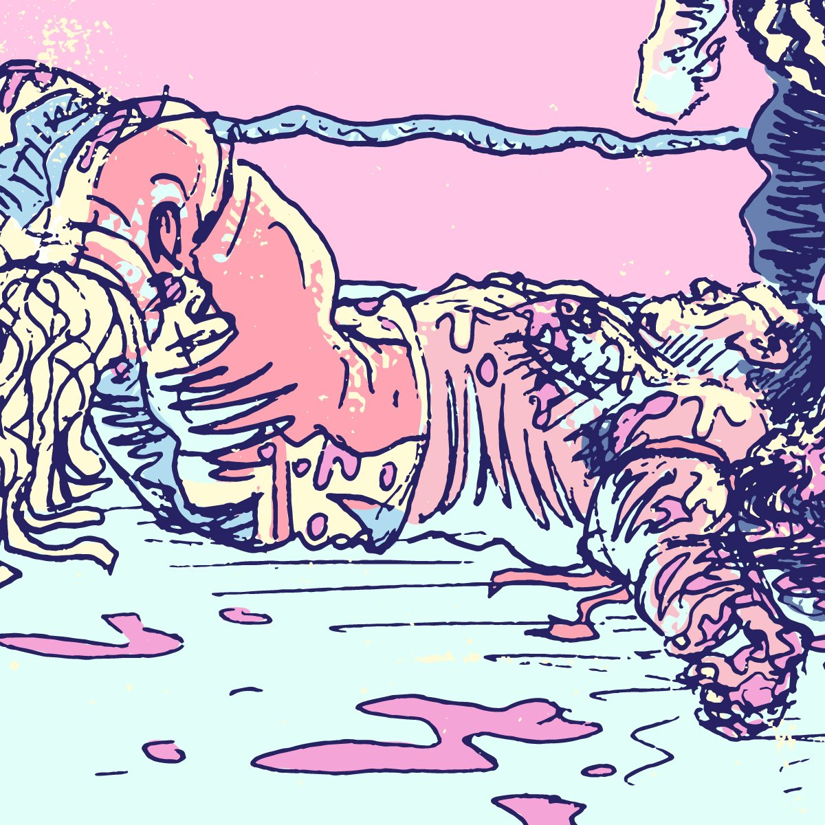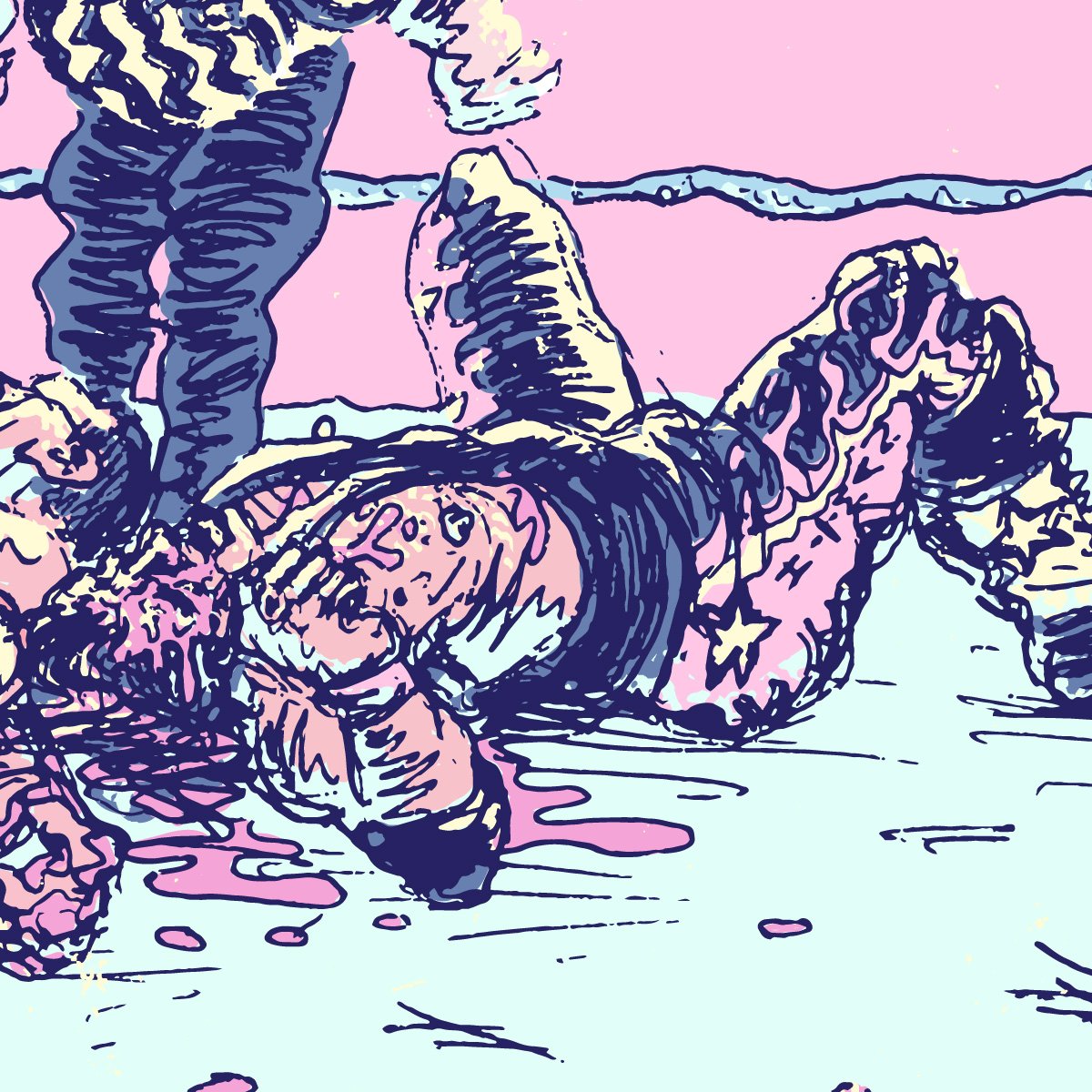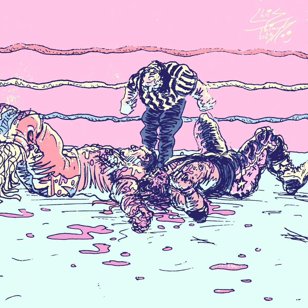 "M.O.T.W. #116: Bret 'The Hitman' Hart vs. 'British Bulldog' Davey Boy Smith" - ink & digital illustration