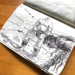 Original Pen Illustration: The one & only original black & white pen sketch (pictured) that spawned this illustration can be yours & yours alone! Hand-drawn on thick, slightly textured, recycled stock (7 x 4.75") - straight out of my little sketch book.. I'll also include a bonus 6x6" full-colour premium print of the illustration in question for you. Available until it's not!