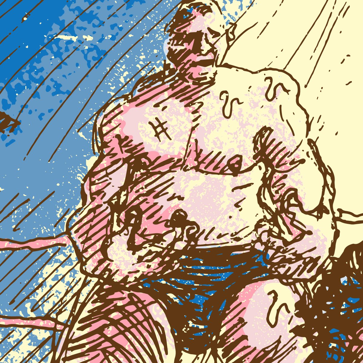"M.O.T.W. #131: Speedball Mike Bailey vs. Walter" - ink & digital illustration