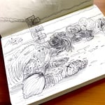 Original Pen Illustration: The one & only original black & white pen sketch (pictured) that spawned this illustration can be yours & yours alone! Hand-drawn on thick, slightly textured, recycled stock (7 x 4.75") - straight out of my little sketch book.. I'll also include a bonus 6x6" full-colour premium print of the illustration in question for you. Available until it's not!